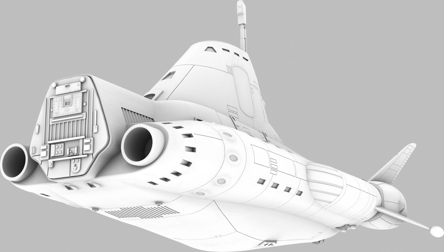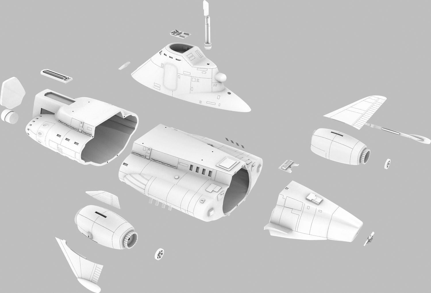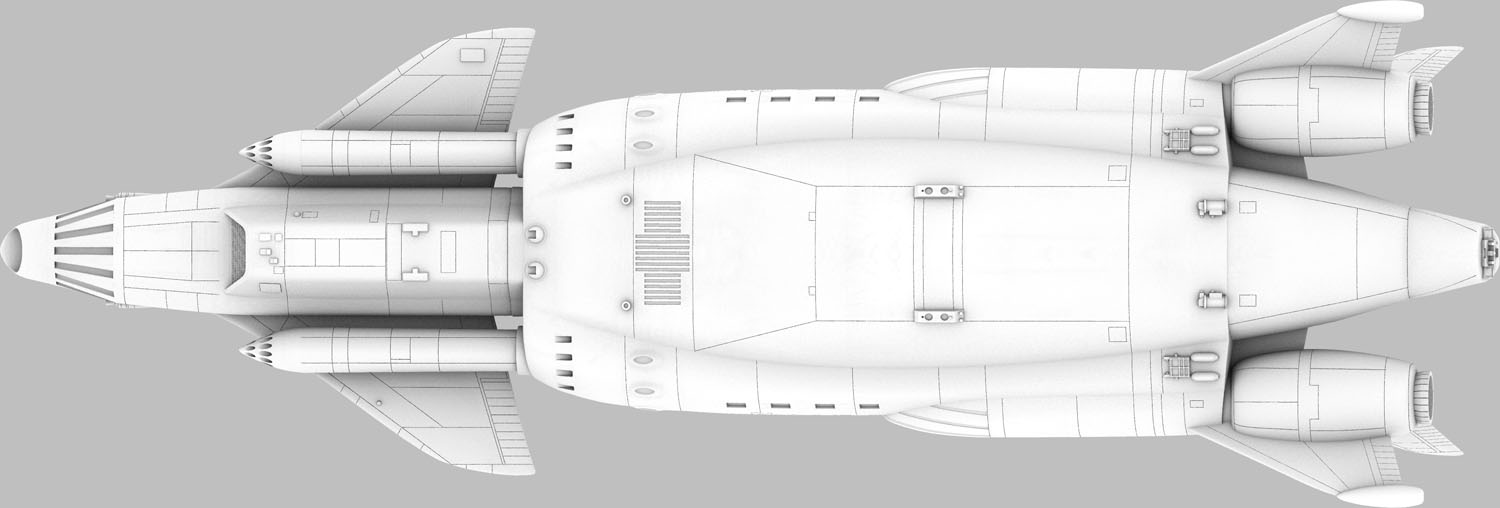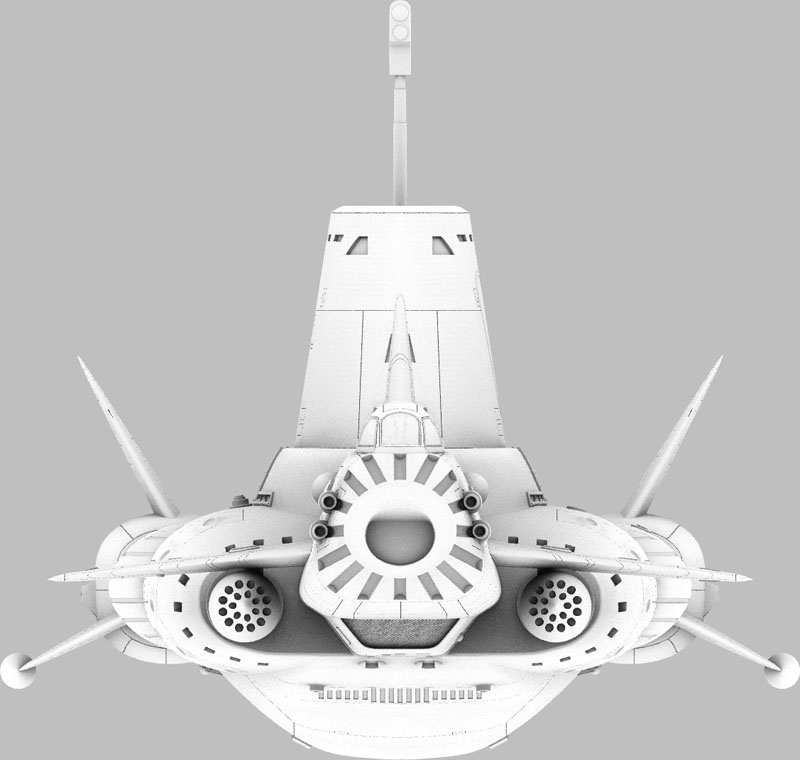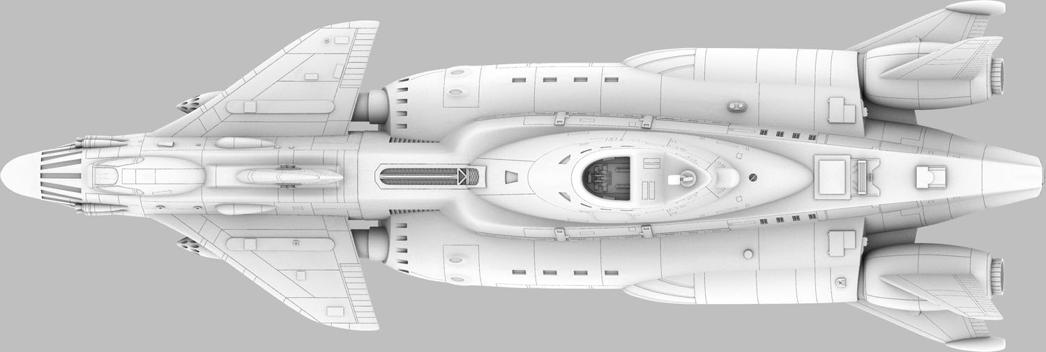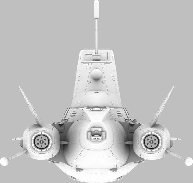 The completed Sky 1 model measures about 11.5" x 9" x 4.5". A terrific build-up of my original resin kit, made from the original versions of these parts, by modeler John Payne can be seen here.